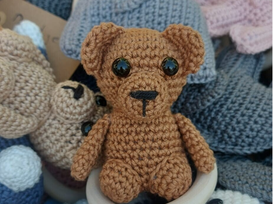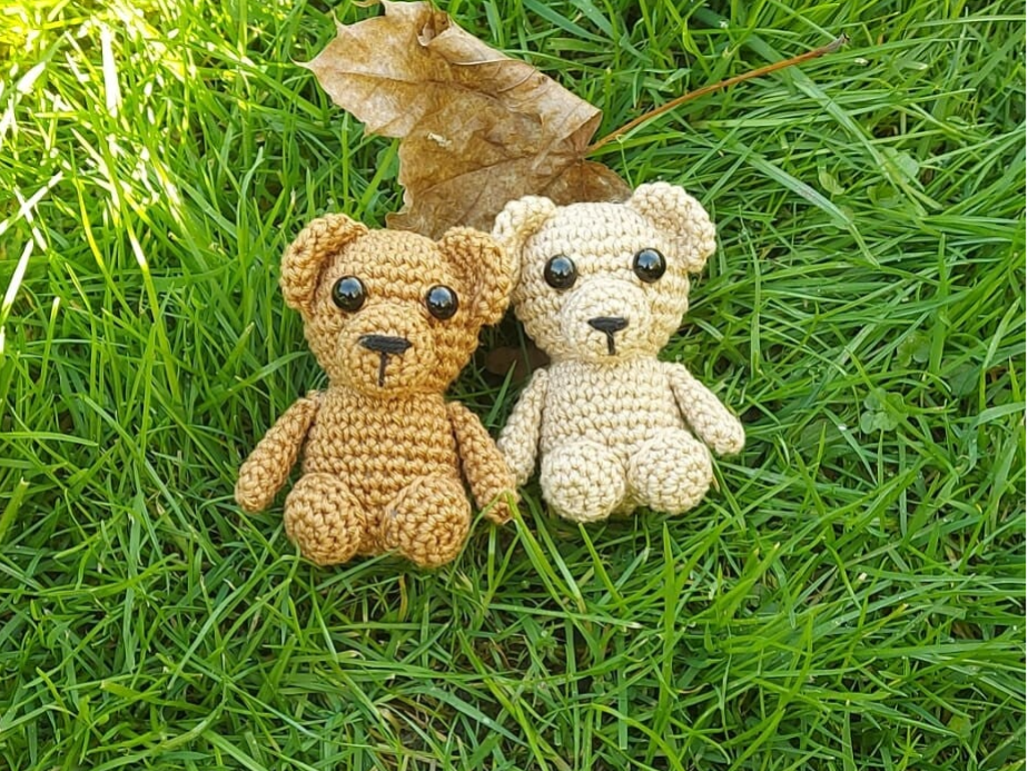 Schattig gehaakt beertje van 100% katoen. Mogelijk in de beige en bruin. De beertjes zijn ongeveer 9 bij 6 cm.