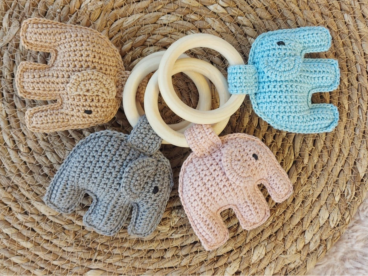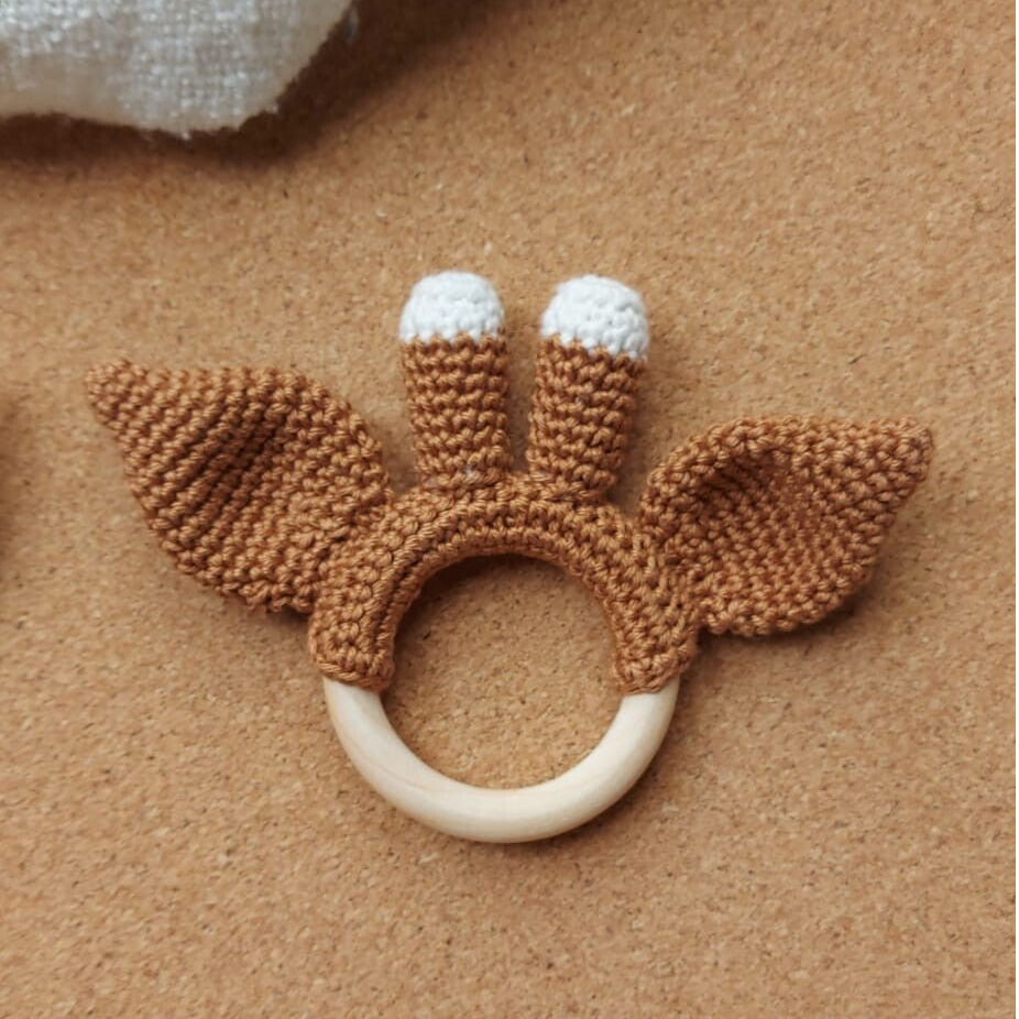 De hertenoortjes zijn gemiddeld 15 bij 10 cm breed, en het olifantje is ongeveer 8 bij 9 cm. De bijtring heeft een diameter van 7 cm. De oogjes van de olifant zijn erop genaaid zodat ze er niet af kunnen vallen en hij veilig in het bedje van je baby kan blijven liggen.