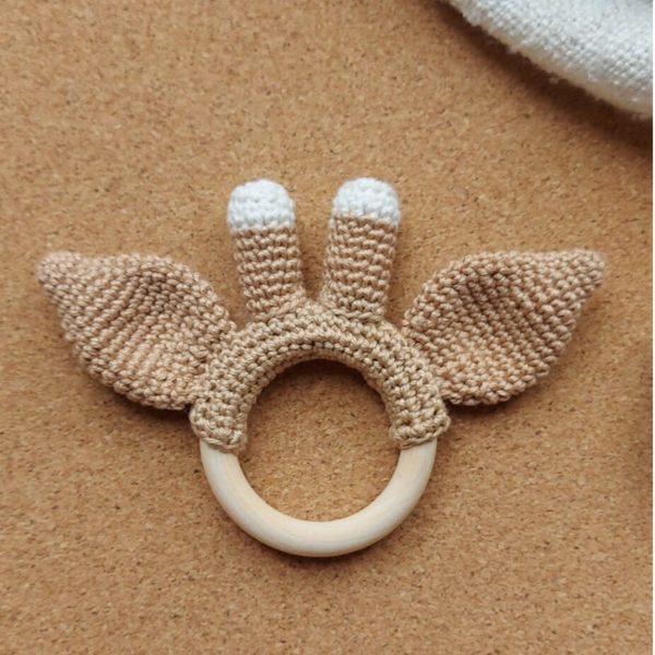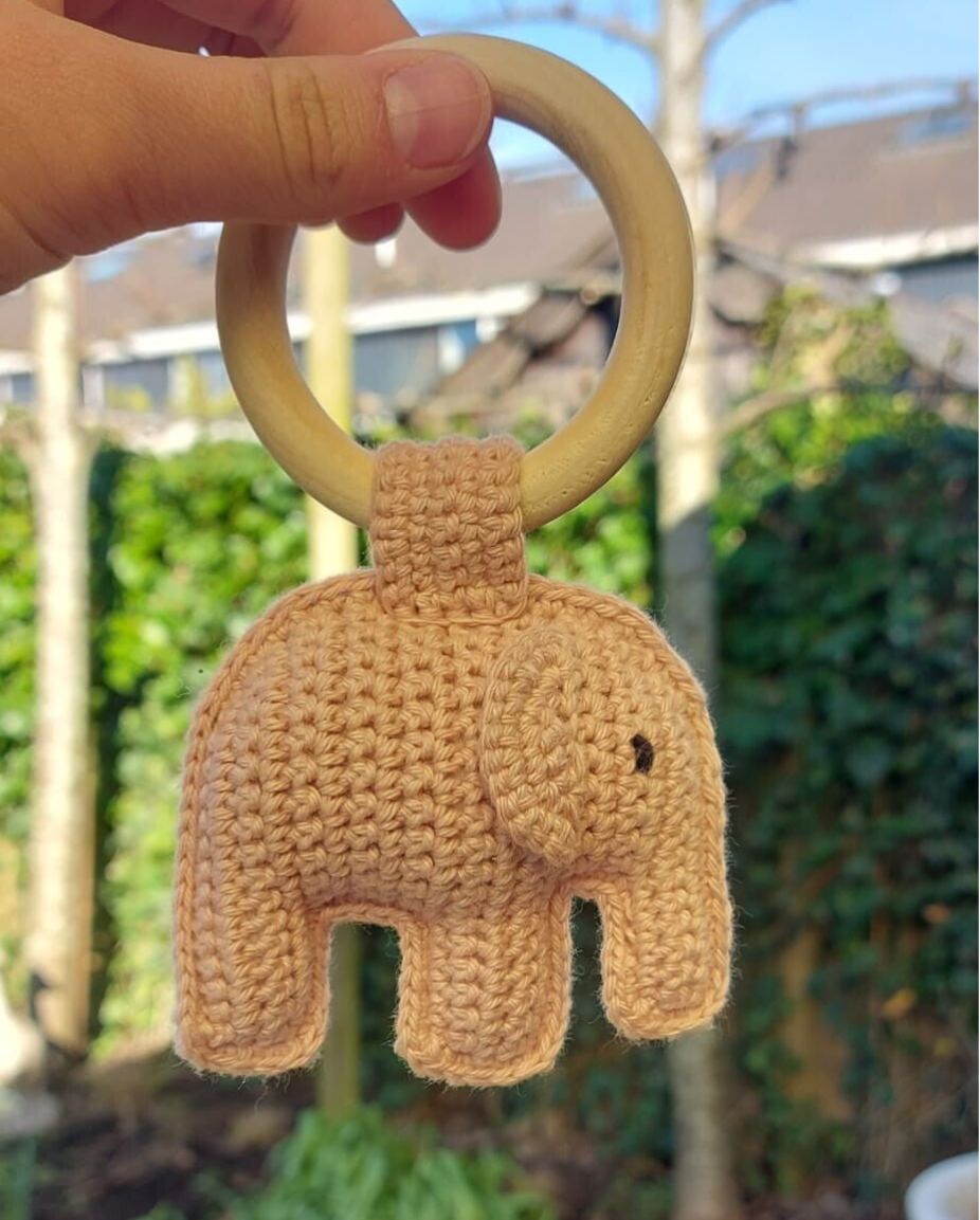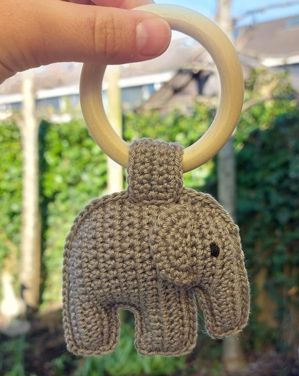 Schatting olifantje of hertenoortje aan een bijtring met een rammel belletje.