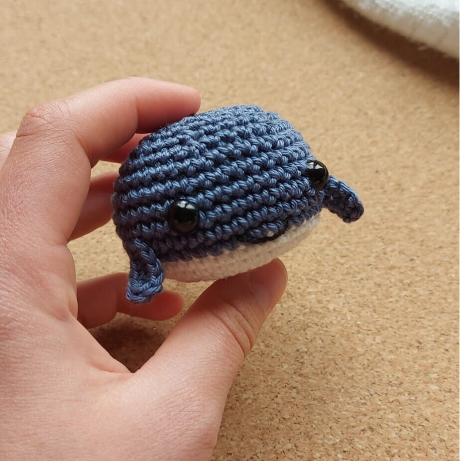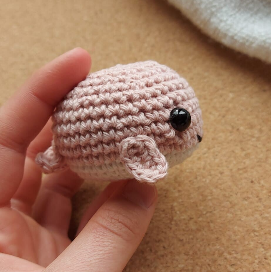 Gehaakt walvisje van 100% katoen. Mogelijk in de kleur roze, donkerblauw, lichtblauw en beige.